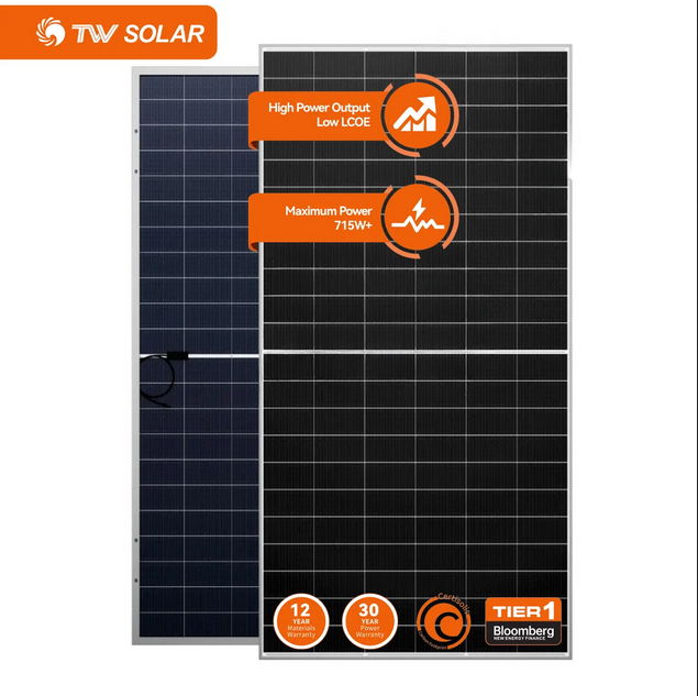 پنل 715 واتی تانگو با توان بالا، انتخابی ایدهآل برای کسانی است که به دنبال تولید برق بیشتر با کمترین تعداد پنل هستند. این توان بالا به ویژه در نیروگاههای خورشیدی و پروژههای صنعتی بسیار کاربردی است.